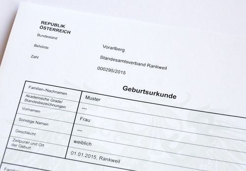 Nach der Geburt wird eine Geburtsurkunde ausgestellt.